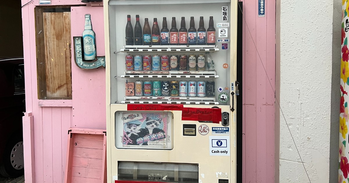 Walking along City Hall Street from the 730 intersection in central Ishigaki, you’ll see several vending machines lined up. They sell craft beer and local island brews—an island lineup that feels very much like something 離島ならでは (ritō narade wa)—unique to a remote island.